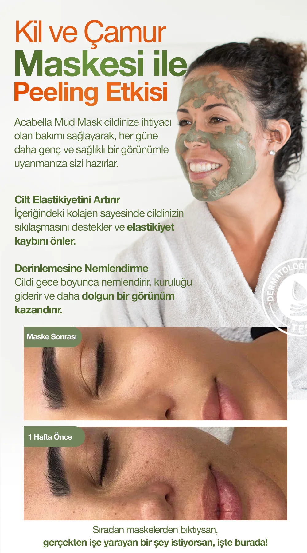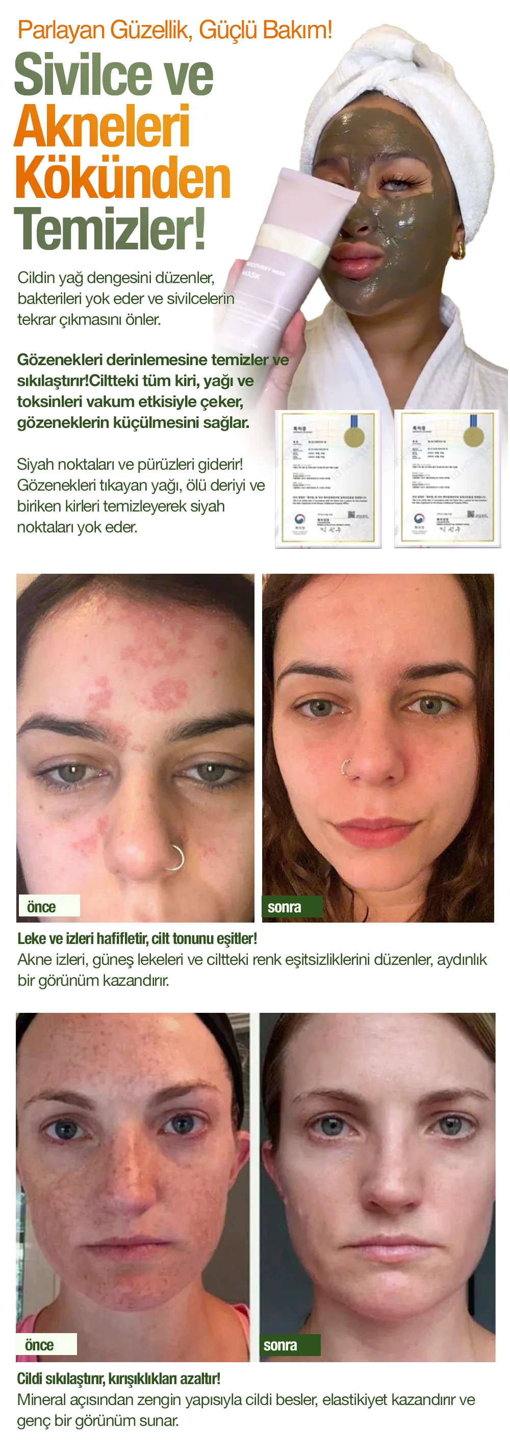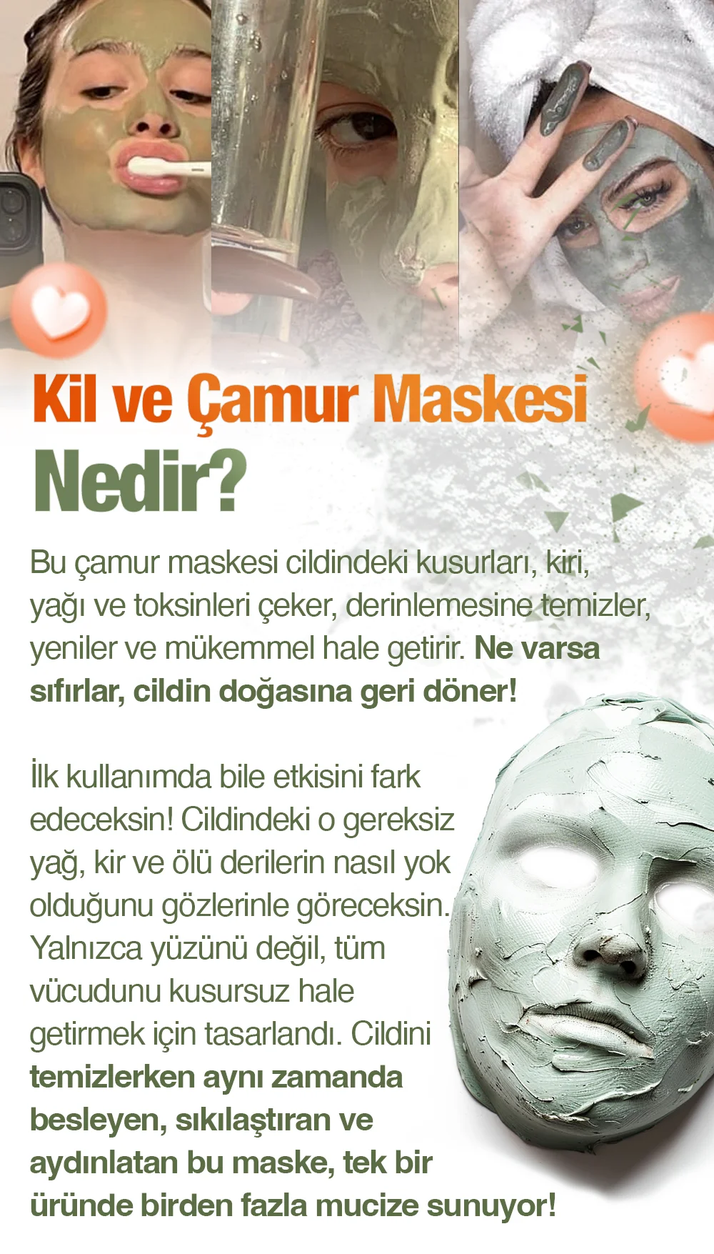 Kil çamur maskesi yağlı, karma ve normal cilt tipleri için uygundur. Hassas cilde sahip olanlar önce küçük bir bölgede test etmelidir.